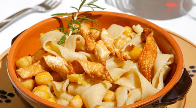 - Lessare la metà della tria nella minestra di ceci, friggere il resto della tria in olio evo ed unirla al resto della minestra.